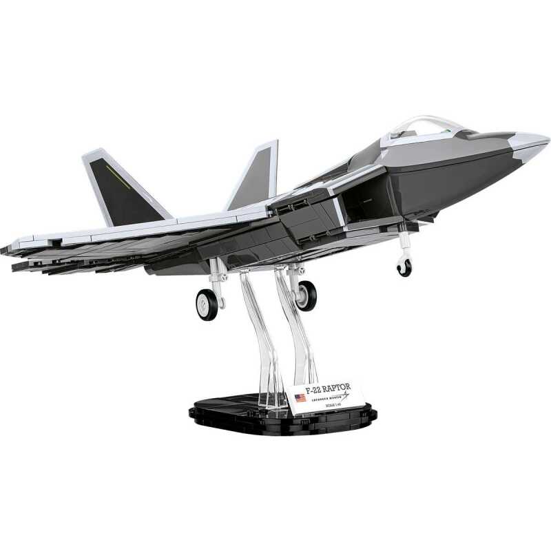 De LOCKHEED® F-22® Raptor® is een geavanceerd multifunctioneel gevechtsvliegtuig van de vijfde generatie. Dit nog steeds enigszins mysterieuze en streng bewaakte vliegtuig werd in dienst genomen door de Amerikaanse luchtmacht en is onderworpen aan een totaal exportverbod naar andere landen. Dankzij de licentieovereenkomst kan COBI de inmiddels legendarische Raptor produceren. Het hoogwaardige model is ontworpen op een schaal van 1:48, passend bij de rest van de Armed Forces-collectie, die moderne militaire uitrusting bevat. Het vliegtuig bestaat uit 695 bouwstenen, inclusief prints. Voor deze set zijn compleet nieuwe elementen ontwikkeld die kenmerkend zijn voor de F-22: de neus van het vliegtuig met de cabine en verticale stabilisatoren. Het model is perfect afgewerkt en glad, net als zijn echte tegenhanger met STEALTH-technologie. De set bevat een te openen cabine waarin je een gedetailleerde pilootfiguur met zuurstofmasker kunt plaatsen. Het landingsgestel van het vliegtuig kan ook gemakkelijk worden gedemonteerd om het model beter weer te geven op het meegeleverde displaystandaard, die ook een plaat bevat met de naam van het vliegtuig en de Amerikaanse vlag erop gedrukt. Er zitten ook bommen in het openingsluik. Het gedetailleerde model van de legende van het luchtruim is een echte traktatie voor verzamelaars en liefhebbers van militaire technologie en bouwstenen. Dankzij het gebruik van ABS van hoge kwaliteit en de lichtgewicht constructie heeft het model de kenmerken van stealth-technologie en is het ondetecteerbaar voor radars, net als het echte model. LOCKHEED® F-22® Raptor® is een zeer geavanceerd gevechtsvliegtuig van de vijfde (nieuwste) generatie dat in dienst is van de Amerikaanse luchtmacht. Het werk eraan begon in de jaren 1980. Het werd ontworpen door het Amerikaanse bedrijf Lockheed Martin. De eerste vlucht vond plaats in 1997 en het werd officieel in dienst genomen in 2005. De F-22 wordt gekenmerkt door geavanceerde technologieën die het toestel een uitstekende wendbaarheid, radarstealth en de mogelijkheid om zowel lucht- als grondoperaties uit te voeren geven. De belangrijkste taak is luchtsuperioriteit. Een van de belangrijkste kenmerken van de F-22 is de zogenaamde “supercruise” – het vermogen om snelheid boven het geluid te behouden zonder de noodzaak van extra brandstofondersteuning. Daarnaast is het vliegtuig uitgerust met een geavanceerd avionicasysteem, de AN/APG-77 radar en een uniek radar cloaking systeem, waardoor het moeilijk te detecteren is door de vijand.