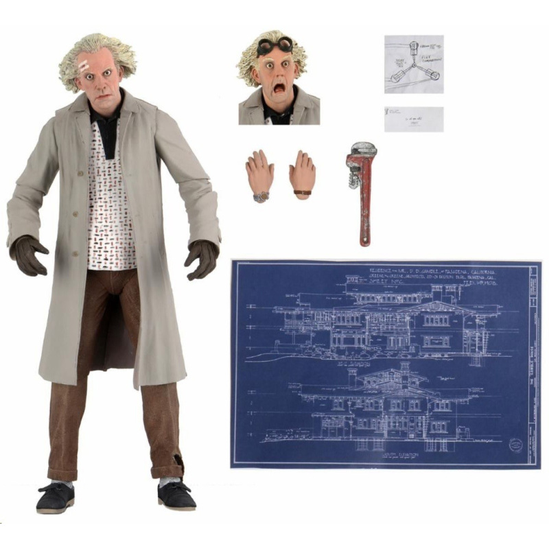 Great Scott! Dokter Emmett Brown, het genie achter de eerste Delorean tijdmachine en een van de grootste filmkarakters aller tijden, voegt zich bij NECA’s Ultimate serie. Gebruikmakend van de officiële gelicenseerde gelijkenis van acteur Christopher Lloyd. Ultimate Doc Brown is gebaseerd op zijn verschijning in 1955 in Back to the Future met 2 verwisselbare hoofden die een algemene uitdrukking en de iconische geschokte uitdrukking uitbeelden. Om Marty te helpen terug te keren naar 1985, komt Doc Brown ook met een moersleutel, tekening van de flux capacitor, verwisselbare handen, een blauwdruk van zijn huis, en een brief van Marty! Het figuur wordt geleverd in verpakking met kijkvenster, perfect voor jouw verzameling.