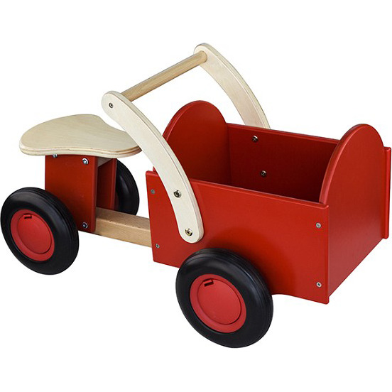 Mooie stevige houten bakfiets van New Classic Toys. Deze bakfiets is niet alleen leuk, je kunt er spullen mee vervoeren en speelgoed in opbergen. Een geweldige manier voor je kind om te bewegen en plezier te hebben. Het kind leert om zich voort te duwen, ontwikkelt kracht, balans en coördinatie die nodig is voor lopen, rennen en fietsen. Geschikt voor binnen en buiten, maar moet wel worden beschermd tegen regen en vochtige omstandigheden, omdat het gemaakt is van dik massief beukenhout. De banden zijn gemaakt van EVA rubber dat prikbestendig is.