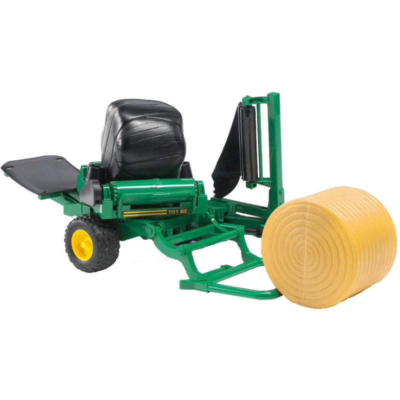 Met een balenwikkelaar is het inpakken van hooibalen nog makkelijker. Plaats de hooibaal en door de roterende bewegingen wordt de hooibaal snel ingepakt om makkelijk te vervoeren. Deze balenwikkelaar van bruder draait echt tijdens het rijden en kan worden gecombineerd met de Claas Rollant 250 ronde balenpers (art. nr. 02121) en met alle trekkers van de Profi-serie.