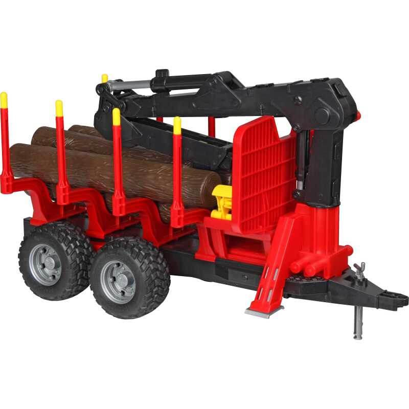 Met de bosbouw aanhangwagen met laadkraan kan je de boomstammen van het bos naar de houtzager brengen. De twee-assige aanhanger beschikt over vier zijbalken, welke gemakkelijk verplaatst kunnen worden, een laadkraan met grijparm en een eigen trekhaak, zodat er meer dan één aanhanger getrokken kan worden.De Bosbouw aanhangwagen met laadkraan en vier boomstammen kan met alle Bruder tractoren worden gebruikt.
