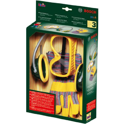 Met deze Bosch speelgoed veiligheidsset van Theo Klein kunnen kleine klussers veilig aan de slag. De set bestaat uit een bouwhelm, een set werkhandschoenen en gehoorbescherming.