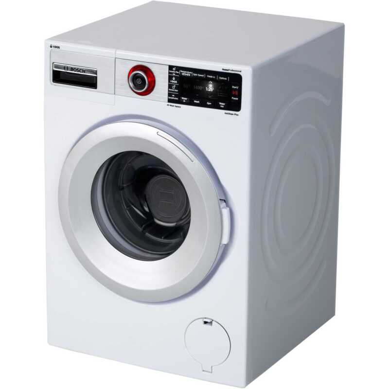 De wasmachine van Theo Klein is een getrouwe weergave van een Bosch wasmachine. Hij werkt op batterijen en is uitgerust met functies die geschikt zijn voor kinderen. De Bosch wasmachine heeft een watervul- en aftapvoorziening en kan met of zonder water worden gebruikt. Er is een verlicht display en vier originele geluiden.