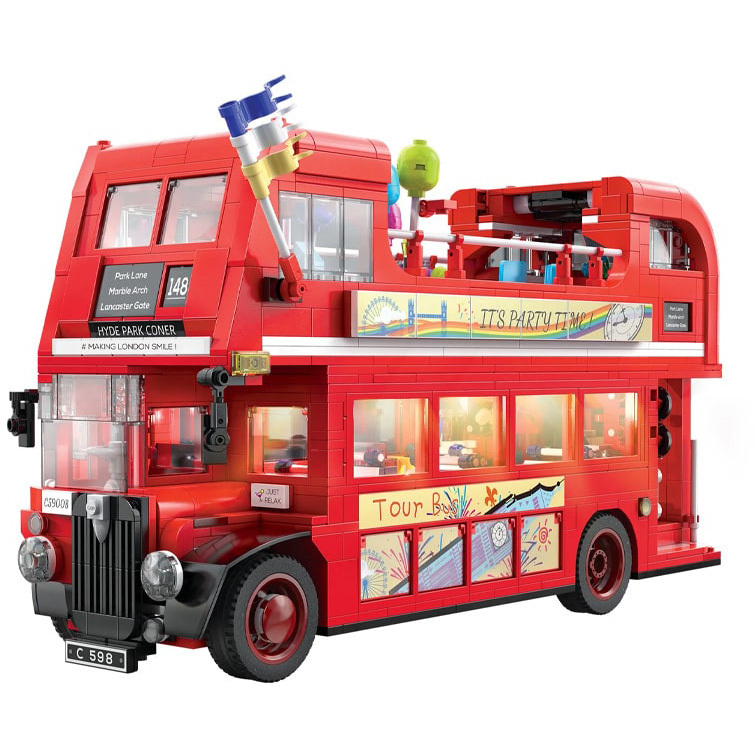 Fans van Londen opgelet: Deze bouwset neemt je mee naar Groot-Brittanniƫ. Dit London Vintage Tour Bus model is gebaseerd op de bekende Londense dubbeldekkerbus, ingericht voor het rondtouren van toeristen. Dit ongeveer 35 centimeter lange voertuig heeft een natuurgetrouw vormgegeven voorste gedeelte, twee verdiepingen verbonden door een trap en een gedetailleerd interieur met DJ booth, ballonnen, zitplaatsen en een snack- en drankstand. Het dak kan worden verwijderd zodat de set ook kan worden gebruikt met de bovenverdieping open. Het interieur van het voertuig is verlicht met behulp van de meegeleverde USB-verlichting. Een geweldig model voor fans van historische voertuigen en liefhebbers van Londen.