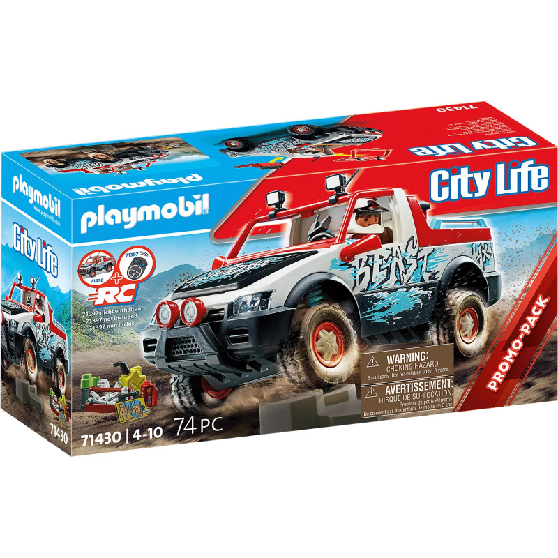 Ga op avontuur met de stoere Rallyauto van PLAYMOBIL! Zet je helm op en start de volgende race met de PLAYMOBIL rallyrijder. Dankzij de flexibele vooras past de auto zich moeiteloos aan elk terrein aan. Als je de motorkap opent, zie je het motorblok. Haal de rolbeugel eraf om de figuurtjes erin te zetten. De pick-up truck is compatibel met afstandsbediening en kan worden gebruikt met zowel de 2,4 GHz RC-module-set (6914) als de Bluetooth RC-module-set (71397 – apart verkrijgbaar). Een geweldige speelset voor spannende rollenspellen in de kinderkamer.
