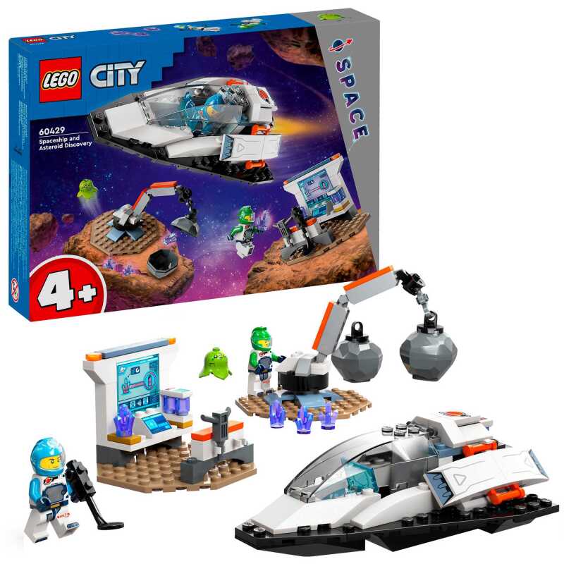 Ga samen met je kleine astronaut op buitenaardse avonturen met deze 4+ LEGO® City Ruimteschip en ontdekking van asteroïde (60429) speelset met een ruimteschip en 2 asteroïdegedeelten: een laboratorium en een opgravingsgebied met een kraan. Voeg de 2 ruimteminifiguren, de alien en de kristalrijke meteoriet toe voor fantasierijke verhalen. Dit eenvoudig te bouwen ruimtespeelgoed is een leuk cadeau voor kinderen die graag doen alsof. De set bevat een LEGO startsteen, instructies met afbeeldingen en 3D-instructies in de LEGO Builder app – een digitale bouwpartner met intuïtieve functies waarmee kinderen kunnen inzoomen, modellen kunnen draaien en ze van alle kanten kunnen bekijken tijdens het bouwen. LEGO City ruimtesets bevatten realistische voertuigen, gedetailleerde gebouwen en inspirerende personages die fantasie en werkelijkheid combineren. Kinderen kunnen deze leuke set uitbreiden met andere sets (apart verkrijgbaar) uit het LEGO City ruimteassortiment voor nog meer avonturen.