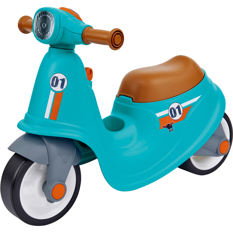 Met de BIG Classic Scooter Sport kunnen kleine bestuurders vanaf 18 maanden beginnen met leuke uitstapjes en op speelse wijze hun motoriek en gevoel voor balans trainen. De BIG Classic Scooter Sport is speciaal afgestemd op de ergonomie en behoeften van kinderen. Als extra is deze scooter uitgerust met een elektronische geluidsmodule. Wanneer je die indrukt, klinkt een claxon of rijgeluid. Dankzij de perfecte positie op de comfortabele zitting kunnen kleine bestuurders direct op pad. Een ergonomisch stuur met kindvriendelijke handgrepen en handbescherming beschermt de handjes tegen uitglijden of scheuren. De wielen zijn gecoat met een slijtvast premium zacht materiaal dat zorgt voor uitstekende tractie en fluisterstil rijden. De BIG Classic Scooter Sport is uitgerust met een mechanische contactsleutel voor het geheime compartiment onder de zitting met extra opbergruimte. Een stuurhoekbegrenzing zorgt voor een hoge kantelstabiliteit. De uitstekende bouwkwaliteit en het lage zwaartepunt maken het voertuig tot een veilig speelgoed, zelfs op lange ritten.