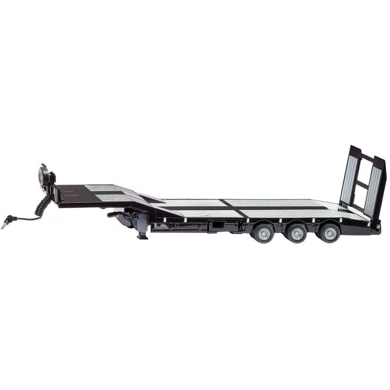 Bijzonder zware vrachten zoals bouwmachines, tractoren of delen van een brug kunnen alleen met een speciale dieplader worden vervoerd. De EURO-dieplader van de Nederlandse fabrikant Nooteboom wordt beschouwd als een van meest robuuste modellen op de markt. Dankzij de hydraulische besturing kunnen de zware speciale transportvoertuigen bovendien uitstekend manoeuvreren. De Nooteboom EURO-trailer vormde ook het uitgangspunt voor de 3-assige dieplader van siku. De oplegger heeft de vorm van een diep bed, achterop bevindt zich een elektronische oprijhelling om de zware last gemakkelijker te kunnen laden. Het chassis van het model is van metaal, de opbouw is van kunststof. Voor extra stabiliteit tijdens stilstand kunnen er handmatig steunpoten worden uitgetrokken. Achterop de oplegger bevinden zich vier LED’s: twee rode rijlichten en twee knipperlichten. De dieplader wordt via een kabel met twee klinkstekkers met de bijbehorende Bluetooth-trekker uit de SIKU CONTROL serie verbonden, net zoals een vrachtwagen of een tractor. Deze kan dan vervolgens eenvoudig via de SIKU CONTROL app of de bijpassende module voor afstandsbediening worden bestuurd.