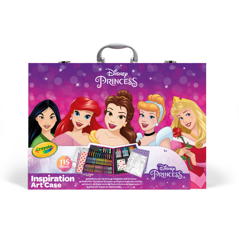 De Disney Prinsessen Inspiratie Kleurkoffer van Crayola is dé magische kleurset voor de echte creatieveling en Disney fan! Een complete set voor kinderen om creatief te kleuren, tekenen en knutselen met onder andere Assepoester, Pocahontas en Ariel. De kleurkoffer is gemaakt van stevig materiaal en heeft een handig handvat zodat de koffer overal mee naartoe kan. Ideaal voor op vakantie of bezoekjes aan opa en oma.