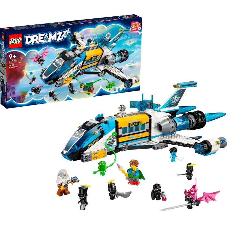 We gaan op een wilde rit in de droomwereld van LEGO DREAMZzz: De ruimtebus van Mr. Oz is gebaseerd op de tv-serie en bestaat uit 878 stukjes. Hij kan worden uitgerust met raketten en blasters. De cockpit en de laadkleppen aan de achterkant kunnen open. Draaibare stuwraketten en blasters behoren ook tot de coole functies van de bus. Een gigantisch kanon, een starfighter en een miniruimteschip kunnen in één bouwvariant worden gebouwd. De set bevat de minifiguren Mateo en Mr. Oz en 3 extra figuren: Albert de aap, Z-Blog en Susan.