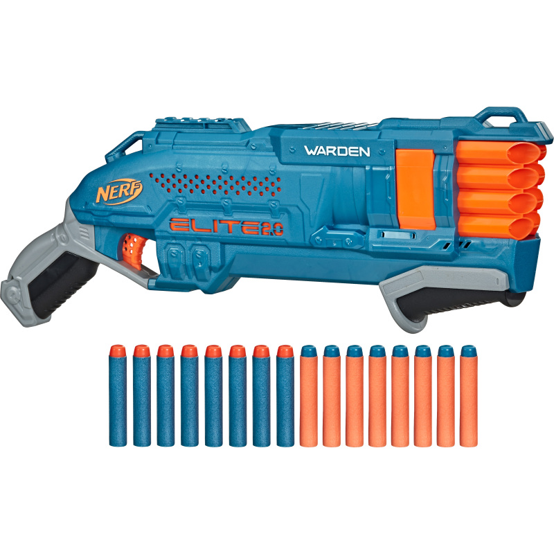 Maak je klaar voor de strijd met NERF Elite 2.0-blasters en hun ingebouwde aanpassingsmogelijkheden om ze te upgraden en de bovenhand te halen tijdens NERF-gevechten. Leg een voorraad NERF Elite 2.0-blasters aan om je spelstrategie te optimaliseren en bij alle missies en gevechten je spelstrategie, tactische prestaties en flexibiliteit in te zetten! De NERF Elite 2.0 Warden DB-8-blaster vuurt 2 darts tegelijk af zodat je een dubbele dosis vuurkracht kunt loslaten op je doelwitten. Je kunt 8 darts laden in de blaster om een reeks darts af te vuren op je tegenstanders voordat je moet herladen. Met de tactische rail kan je de blaster aanpassen voor elke missie en elk gevecht. De pompactie biedt je de mogelijkheid om de 8 darts snel opeenvolgend af te vuren! De set bevat 16 officiële NERF darts, 8 om te laden in de blaster en 8 als reserve. Schiet darts tot 26 meter ver! De NERF Elite 2.0 Warden DB-8-blaster wordt geleverd in een Frustration Free verpakking, om snel het NERF-gevecht aan te gaan.