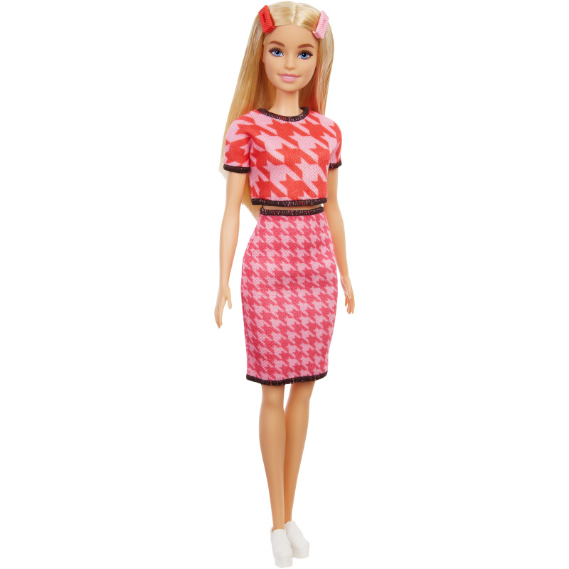 Barbie en Ken Fashionistas vieren diversiteit met modepoppen die het vertellen van verhalen in de echte wereld en dromen met een open einde aanmoedigen! Met een grote verscheidenheid aan huidskleuren, oogkleuren, haarkleuren en -texturen, lichaamstypes en mode, zijn de poppen ontworpen om de wereld te weerspiegelen die kinderen vandaag de dag zien — en hun aandachttrekkende outfits helpen hen op te vallen met persoonlijkheden die knallen! Gebruik de herbruikbare vinylverpakking om jouw Barbie-modes en accessoires in te bewaren, en draag de pop overal naartoe, versier ze zelfs en gebruik ze voor zelfexpressie! Kinderen kunnen Barbie poppen en accessoires verzamelen voor oneindige manieren om verhalen uit te spelen, hun eigen stijl te uiten en te ontdekken dat mode leuk is voor iedereen! Deze Barbie Fashionistas pop komt met een leuk oranje/roze topje en bijpassende rok.