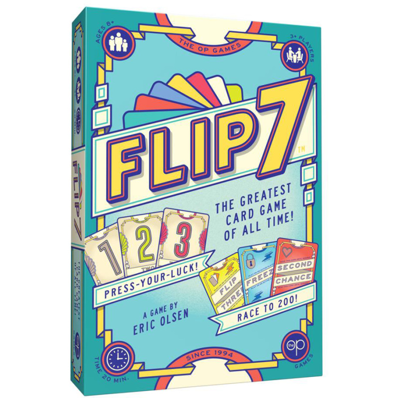 Draai de kaarten één voor één om zonder twee keer hetzelfde getal om te draaien. Klinkt makkelijk? Denk er nog eens over na! Dit is niet zomaar een kaartspel… In Flip 7 heb je maar één 1-kaart, twee 2’en, drie 3’en, enz. plus een heleboel speciale kaarten die je extra punten kunnen opleveren, je een tweede kans kunnen geven of jou of je tegenstanders kunnen bevriezen. Ben jij het type speler dat op veilig speelt en punten verzamelt voordat het mis gaat, of ga je voor de bonuspunten door er zeven op een rij om te draaien? Daag je geluk en strategie uit in dit verslavende kaartspel dat zeker het beste kaartspel wordt dat je ooit hebt gespeeld!