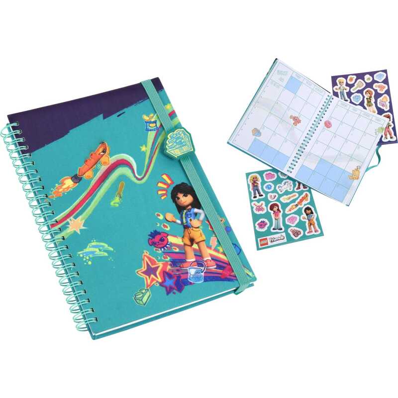 Deze chique, kleurrijke LEGO Friends notitieboek heeft een praktisch elastiek om te sluiten.
