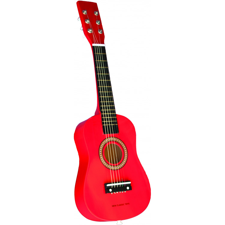 Voor de kleine gitarist, prachtige houten speelgoed gitaar van New Classic Toys. Leer spelenderwijs het gitaarspel. Inclusief, gitaarband, plectrum en een reserve snaar.