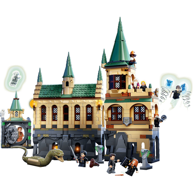 De LEGO Harry Potter Zweinstein Geheime Kamer speelset is een indrukwekkend verzamelobject waarmee je verrassende nieuwe speelmogelijkheden ontdekt. Deze veelzijdige set bevat bekende ruimtes, betoverende functies en populaire personages uit de Harry Potter films. In de Grote Zaal vind je twee lange tafels, de gouden lessenaar van Perkamentus in de vorm van een uil en authentieke accessoires, zoals de Sorteerhoed. De Geheime Kamer heeft net als in de film een opvallende ronde ingang en een groot standbeeld met een geopende mond, waarachter zich de gang bevindt waardoor de Basilisk de ruimte binnenkomt. Bij de set vind je maar liefst 10 minifiguren: Harry Potter, Ginny Wemel, Marten Vilijn, Kasper Krauwel, Joost Flets-Frimel, Loena Leeflang, Gladianus Smalhart, Albus Perkamentus, professor Sinistra en Haast Onthoofde Henk, plus een aantal verzamelobjecten: een exclusieve gouden jubileumminifiguur van Voldemort en zes willekeurige tovenaarskaarttegels.