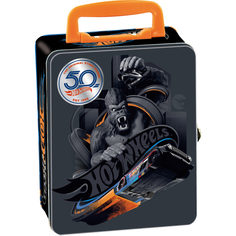 In totaal passen er 50 Hot Wheels in de praktische Hot Wheels metalen koffer, een jubileumuitgave van Theo Klein. De koffer is gemaakt van stevig metaal, zodat hij robuust maar ook gemakkelijk te vervoeren is. Zo blijft de kinderkamer netjes en opgeruimd en kan je de auto’s mee naar buiten nemen om te spelen.