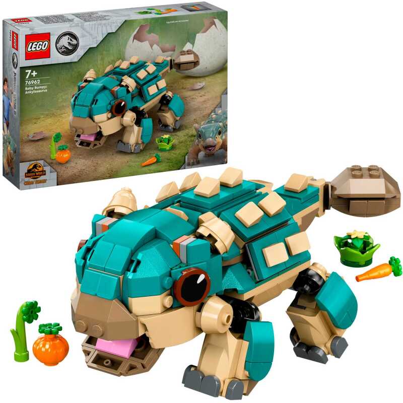 Inspireer fans van de tv-serie Kamp Krijtastisch met een Baby Bumpy: Ankylosaurus speelgoedmodel (76962) boordevol avontuurlijke mogelijkheden. Eerst bouwen jonge dinosaurusverzorgers vanaf 7 jaar deze LEGO® Jurassic World set, daarna duiken ze in het spel terwijl ze de wereld verkennen met Bumpy. De bouwbare dinosaurus heeft een kaak die open kan, een beweegbare staart die kwispelt als de kop heen en weer beweegt, beweegbare poten en wat groenten. Zodra het spel voorbij is, kun je het leuke dinosaurusmodel in verschillende dynamische houdingen op een plank of tafel neerzetten. Dit creatieve speelgoed voor kinderen past goed bij verschillende LEGO Jurassic World modellen uit de serie (elk apart verkrijgbaar) om kinderen te vermaken, of ze nu klassieke scènes uit de animatieserie willen naspelen of gewoon een mooi model willen bouwen en neerzetten om hun passie te laten zien. De set heeft ook het ideale formaat voor draagbaar speelplezier.