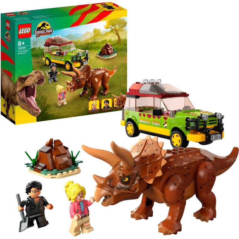 Deze LEGO set creëert een scène uit de film “Jurassic World” uit 281 stukjes. De set bevat de gedetailleerde Jurassic Park Ford Explorer met ingebouwd navigatiesysteem, een beweegbare Triceratops en een bouwbare dinostapel met daarin een giftige bes. In de Explorer is ruimte voor de twee minifiguren Ian Malcolm en Dr. Ellie Sattler, die ook zijn inbegrepen.