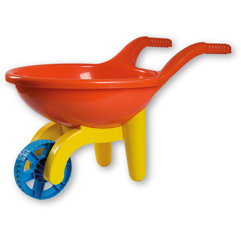 Leuke kleurrijke speelgoed kruiwagen. De kruiwagen is ongeveer 51 centimeter groot en is gemaakt van kunststof.