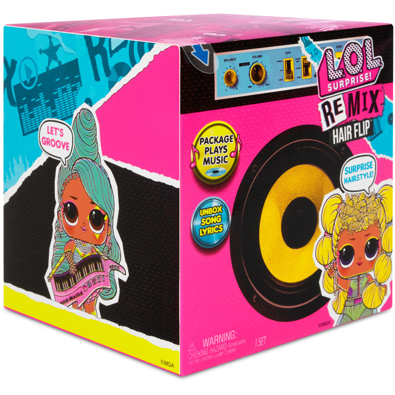 Deze stoere B.B.’s zijn klaar om het podium op te stappen, maar alles wat ze nodig hebben voor hun -So Extra- Tour is geremixt, inclusief hun muziek. Ze roepen de hulp in van alle B.B.’s om samen met hun crew een concert te geven waarvan het dak eraf gaat. Ze staan sterk met een frisse sound, uitbundige mode en supervette moves en doen wat ze het beste kunnen: geweldige muziek maken en die vibe remixen. L.O.L. Surprise! Remix Hair Flip-poppen zijn gloednieuwe personages die elk een muziekgenre vertegenwoordigen: pop, r&b, hiphop, country of rock. Ze staan klaar om op te treden en hun ultieme concert te geven tijdens hun -So Extra Tour-, maar alle muziek is geremixt! Help ze hun song uit te pakken. De verpakking speelt echt muziek af. Onthul de verzamelbare muziekplaat van elke pop en speel hem af op de platenspelerverpakking. Nadat je de songteksten van je pop hebt gevonden, kun je haar helpen zich klaar te maken voor de show. Pak een pop uit met een supergek kapsel. Open het haar en onthul een haarverrassing. Heeft ze een nieuwe haarkleur of een andere haarstructuur? Pak de fantastische mode en muziekaccessoires van elke pop uit, zodat ze klaar is om te rocken. Help ze dan om de songtekst af te maken! Elke pop wordt geleverd met tekststickers. Combineer de sticker met het nummer op het tekstblad om de songtekst af te maken. Verzamel alle songtekstbladen van de hele L.O.L. Surprise! Remixlijn om het hele nummer te onthullen. Of mix en match songteksten om je eigen remix te maken.Heb jij de songtekst van jouw pop gevonden? Of andere songteksten die je nog niet hebt gehoord? Verzamel alle 12 de L.O.L. Surprise! Remix Hair Flip-poppen. Verzamel om een boombox te bouwen door de verpakkingen van 2 L.O.L. Surprise! Hair Flip-poppen en 1 L.O.L. Surprise Remix Pets met elkaar te verbinden. Verzamel muziek en songteksten van de hele L.O.L. Surprise! Remix-lijn om de song compleet te krijgen. Of mix en match songteksten om je eigen remix te creëren.