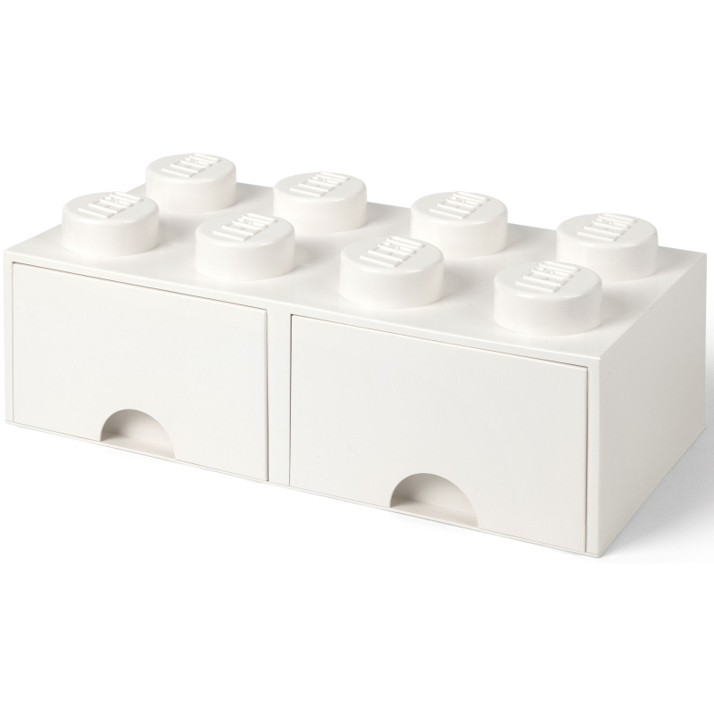 De witte LEGO Brick-lade is een leuke opbergdoos met laden voor speelgoed, LEGO-stenen, kantoorbenodigdheden en andere kleinigheden. De doos kan op een bureau, op een plank of op de vloer worden geplaatst en past in het LEGO Storage Brick System. De Brick-lade heeft twee laden om te openen en is stapelbaar net als echte LEGO-stenen.