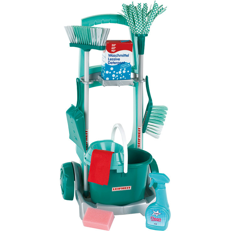 De Leifheit schoonmaaktrolley is eenvoudig te monteren en wordt geleverd met tal van accessoires. Zodat de kleintjes kunnen schoonmaken zoals mama en papa.