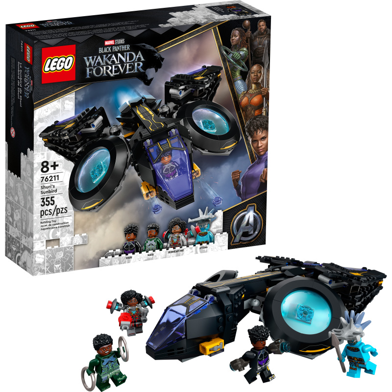 LEGO Marvel Shuri’s Sunbird (76211) ziet er supercool uit en is geweldig om mee te spelen. Verras Black Panther fans van 8 jaar en ouder met dit bouwbare vliegtuig en kijk hoe hun fantasie de hoogte in schiet! Prachtig om mee te spelen en neer te zetten Dit indrukwekkende model is een authentieke versie van de Sunbird, het fantastische vliegtuig van Shuri uit de Marvel Studios film Black Panther: Wakanda Forever. Dit veelzijdige, indrukwekkende superheldenvliegtuig beschikt over 2 enorme motoren met kogelgewrichten, zodat kinderen ze op allerlei manieren kunnen kantelen en draaien. De scharnierende vleugels kunnen naar voren en naar achteren worden geklapt. Achterin is ruimte voor Shuri’s handwapens en aan de voorkant vind je 2 noppenschieters. De set is inclusief 4 minifiguren – Shuri, Ironheart MK1, Nakia en Attuma – samen met hun coole wapens en accessoires.