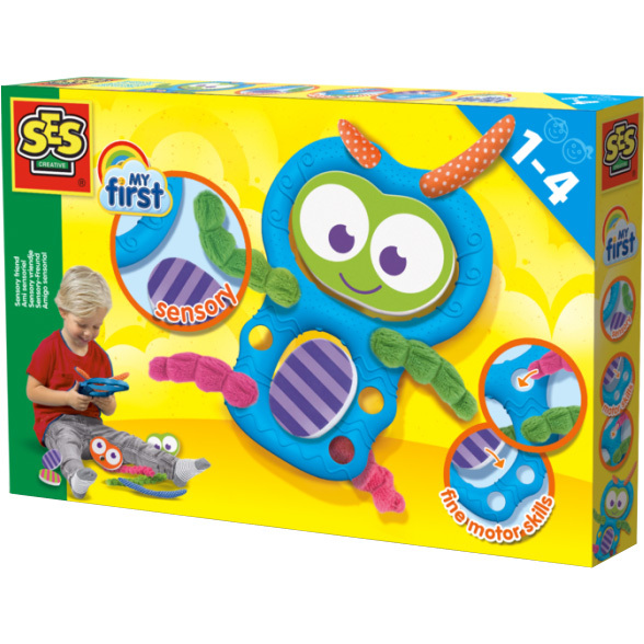 Je moet als peuter de hele wereld nog ontdekken. Met My First – Sensory vriendje van SES Creative ontdek je met je zintuigen verschillende materialen, kleuren en vormen en tegelijkertijd maak je je eerste stapjes in de ontwikkeling van je fijne motoriek. Friemel en voel lekker aan de verschillende materialen en probeer hoofdjes en lijfjes van foam te wisselen en de verschillende textielen slierten door de gaten te rijgen.