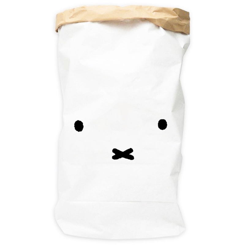 Deze schattige Nijntje papieren opbergzak in maat M is ideaal voor op de kinderkamer als luiermand bij de commode, om klein speelgoed in op te bergen of gewoon als decoratie. De praktische zak is onbewerkt bruin aan de binnenkant, wit gebleekt aan de buitenzijde en voorzien van een zwarte opdruk van de ogen en mond van Nijntje. Vouw de bovenrand naar buiten voor een leuk kleureffect en je hebt gelijk meer houvast.