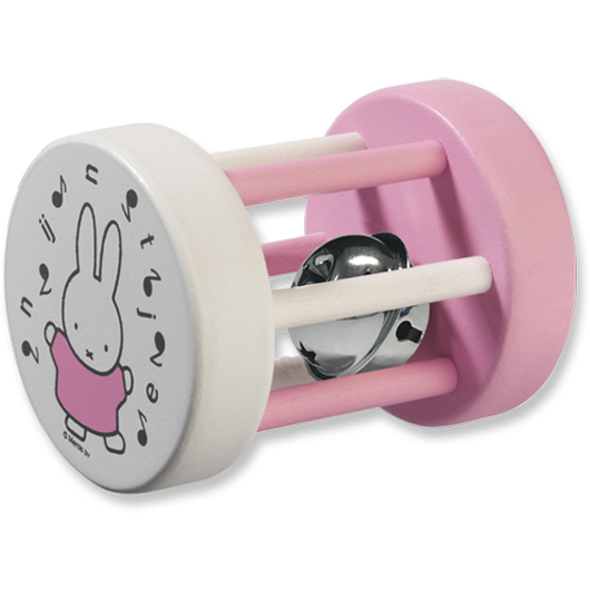 Houten Nijntje belrammelaar in de kleur roze: een klassiek stuk speelgoed in een modern jasje. Door de spijltjes van de rammelaar kunnen ook de kleinste handjes deze goed vastpakken. De bel in de rammelaar stimuleert meerdere zintuigen doordat een baby de bel tegelijkertijd kan horen, zien en voelen. Omdat de rammelaar ook nog kan rollen, is deze bovendien erg leuk om achteraan te kruipen! Op de wit-roze rammelaar staat een vrolijke afbeelding van Nijntje die aan het dansen is op muziek.