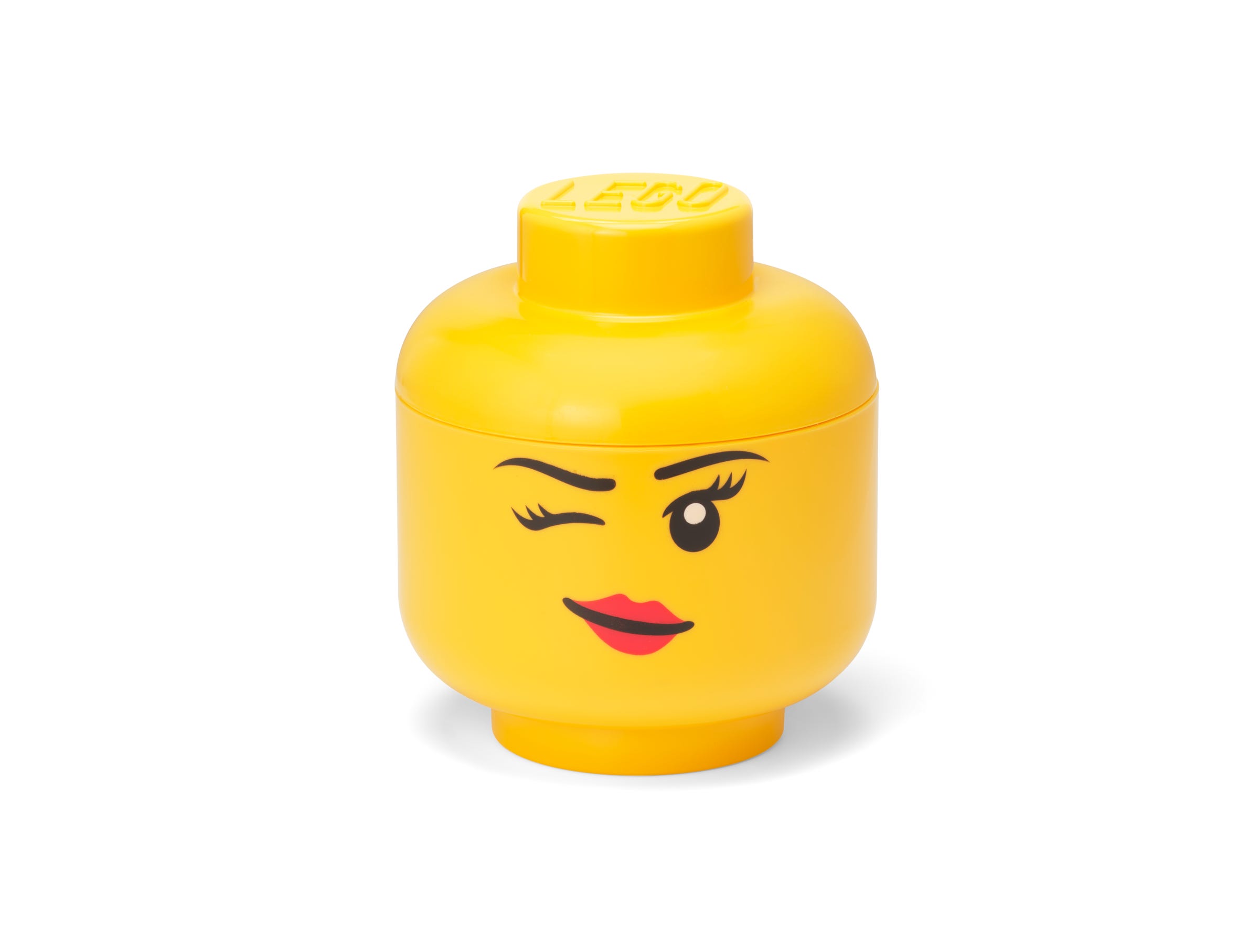 Dit felgele LEGO® opberghoofd is ideaal voor het netjes bewaren van LEGO stenen, accessoires enzovoort. Deze grote versie van het bekende LEGO minifiguurhoofd, gemaakt van duurzaam kunststof, knipoogt naar je en is voorzien van een afneembaar deksel. Het is praktisch, zit boordevol persoonlijkheid en geeft een vrolijk tintje aan elke plank, bureau of tafel. Combineert uitstekend met andere LEGO meubels en vormt zo een opvallend thema in elke kamer.