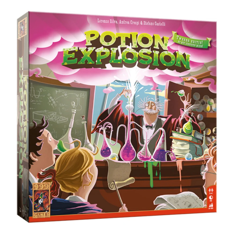 Laat je betoveren door de magische wereld van Potion Explosion! Dit opwindende spel neemt je mee op een reis door een toverdranklaboratorium, waar je ingrediënten verzamelt, explosieve brouwsels maakt en je vaardigheden als tovenaarsleerling test. Wees op je hoede voor de chaos die kan ontstaan wanneer de ingrediënten zich opstapelen en kettingreacties veroorzaken. Durf jij de uitdaging aan om de meest meeslepende toverdranken te creëren en de meester-alchemist te worden? Het unieke spelmechanisme met knikkers zorgt voor een bijzondere speelervaring. Over het spel Spectaculair, tactisch spel over knikkerbotsingen en toverdranken. Deze nieuwe editie bevat een kunststof mixer en de spelregels hebben een overzichtelijke make-over gekregen. Betreed de magische wereld van Potion Explosion, waartoverdrankjes en mysterieuze ingrediënten op je wachten! Als tovenaarsleerling is het jouw taak om ingrediënten te verzamelen, explosieve brouwsels te maken en je te bewijzen als de meester-alchemist. Maar wees op je hoede voor de kettingreacties die kunnen ontstaan wanneer ingrediënten samenkomen! Potion Explosion is een betoverend spel vol strategie en spanning. Wie speelt Potion Explosion? Potion Explosion is speciaal ontworpen voor spelers die op zoek zijn naar een intensieve spelerervaring vol interactie en strategie. Het is perfect voor zowel beginnende tovenaarsleerlingen als doorgewinterde alchemisten die hun vaardigheden willen testen in een magische strijd om heerschappij. Hoe speel je Potion Explosion? Verzamel knikkers uit de dispenser, creëer explosieve kettingreacties en brouw machtige toverdranken om je tegenstander te overwinnen. Gebruik slimme tactieken en strategieën om de meest krachtige brouwsels te maken en je plaats als meester-alchemist te verdienen. Potion Explosion is een spel van vaardigheid, timing en een vleugje magie! Waarom Potion Explosion van 999 Games? Kies voor Potion Explosion van 999 Games en dompel jezelf onder in een wereld vol magie en mysterie. Met hoogwaardige materialen en uitstekende spelregels garanderen we een optimale speelervaring voor elke tovenaarsleerling. Sluit je aan bij de Potion Explosion-community en ontdek waarom dit spel een must-have is voor elke liefhebber van spellen vol strategie en spanning.
