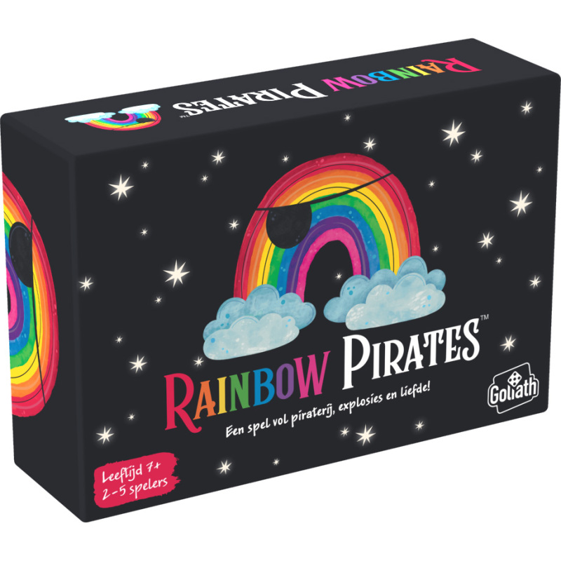 Rainbow Pirates is een kaartspel voor de hele familie waarin je kaartreeksen bouwt in een wereld van regenbogen, stelende piraten en meer. Bouw om de beurt regenbogen en plaats andere kaartgroepen op je ‘eiland’ terwijl je piratenkaarten speelt om tegenstanders aan te vallen en jezelf voordelen te geven! ie aan het eind van het spel de meeste schatpunten heeft, is de winnaar! Je verdient schatpunten door kaarten op je eiland te plaatsen en “uit te gaan” (als dat kan). Je kunt ook de schatpunten van je tegenstander verminderen door hun punten aan te vallen met ZWARTE kaarten!