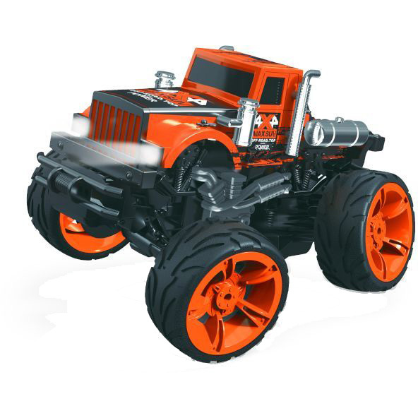 De super stoere afstandsbestuurbare RC Off Road Monster Truck kan 360 graden spinnen en klimt zonder moeite over obstakels heen. De truck kan op meerdere frequenties gebruikt worden, dus tegen elkaar racen kan ook. En als je gewonnen hebt kan je jouw lichteffecten laten zien. De truck is voorzien van 2 motoren voor een maximum snelheid van 12 km/u. en maakt gebruik van een 7.2V 500 mAh oplaadbare accu. De afstandsbediening gebruikt een 9V batterij (meegeleverd).