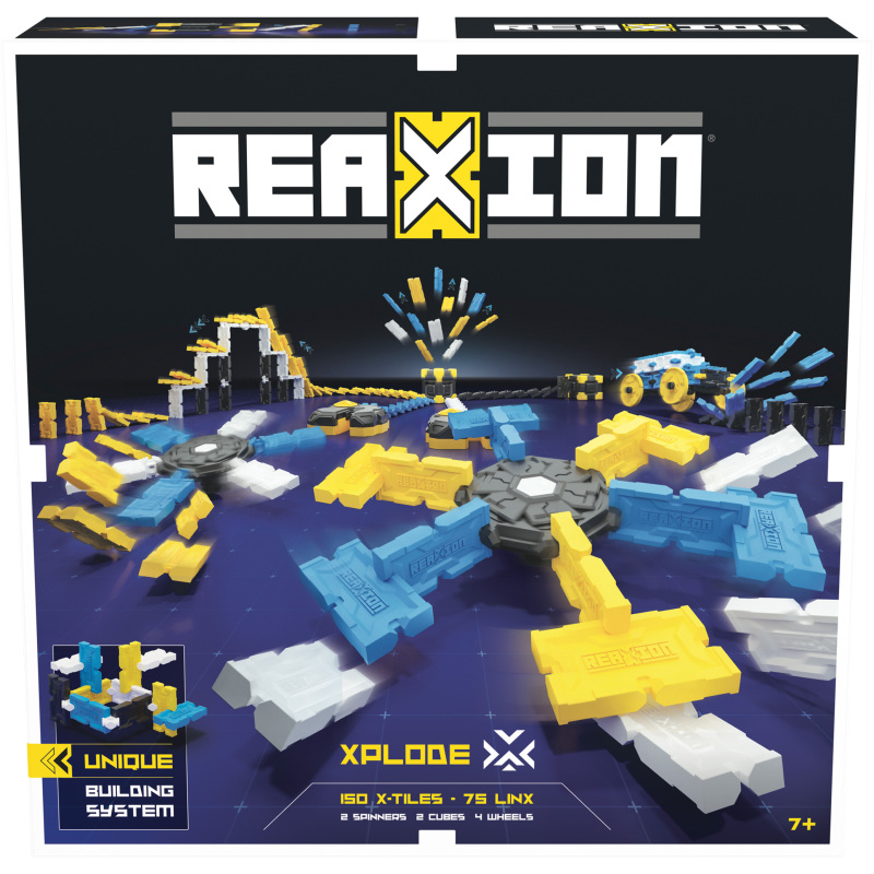 Reaxion is een uniek dominosysteem dat makers tot supersterren transformeert. gebruik de verschillende domino-elementen en speciale stunts voor onbeperkt bouw- en speelplezier. Als je klaar bent, kun je de heleboel omgooien en laten exploderen! Dit innovatieve nieuwe spel staat garant voor actie-reactie op topniveau. Bouw je eigen dominowerelden met extreme stunts. Inclusief kant-en-klare stunts zoals de Cube en Spinner.