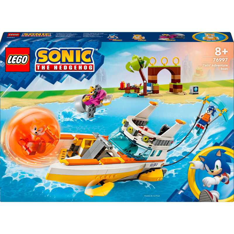 Verwen avonturiers van 8 jaar en ouder met deze Tails’ avonturenboot (76997) bouw- en speelset vol functies en mogelijkheden. Deze LEGO® Sonic the Hedgehog™ speelgoedset bestaat uit een boot met een ingebouwde snelheidsbollanceerder aan de voorkant, een karaokemachine en een dansvloer, plus parasail-aansluitingen aan de achterkant. Ook inclusief 4 personages, een eilandmodel met 3 ringen, een boog, een strandstoel en andere accessoires. Met dit coole Sonic speelgoed kunnen fans van de Blauwe Waas eindeloze verhalen bedenken met Sonic en Tails: van een feestje op de boot met dansen, karaoke, waterskiën en parasailing tot ontspannen op het eiland nadat ze Jawz hebben verslagen en een Tocky hebben gered. Snelle actie en fantasierijk spel gaan hand in hand met LEGO Sonic the Hedgehog speelgoed. Kinderen kunnen ook genieten van een eenvoudig en intuïtief bouwavontuur met de LEGO Builder app. Hiermee kunnen ze inzoomen en hun modellen in 3D draaien, sets opslaan en hun voortgang bijhouden.