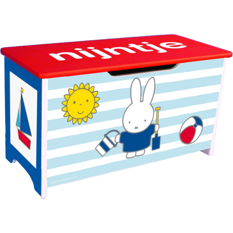 Slingerend speelgoed gemakkelijk opruimen in de Nijntje speelgoedkist was nog nooit zo leuk. Een harde, stevige kist met allemaal leuke afbeeldingen van Nijntje erop.