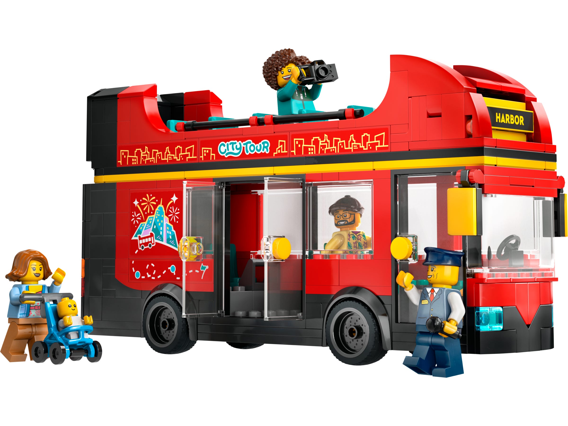 Verras kinderen van 7 jaar en ouder met een rondrit door de stad in deze LEGO® City Toeristische rode dubbeldekker (60407). Kinderen kunnen het bord met bestemmingen ronddraaien, wachtende passagiers oppikken en ze beneden of op het open bovendek plaatsen. Dit opvallende model is geweldig om neer te zetten en bevat 5 minifiguren, waaronder een baby met een kinderwagen, voorfantasierijk speelplezier. Deze rode LEGO City speelgoedbus is inclusief stapsgewijze gedrukte bouwinstructies en 3D-instructies in de LEGO Builder app – een digitale bouwpartner met intuïtieve zoom- en draaifuncties waarmee kinderen modellen van alle kanten kunnen bekijken tijdens het bouwen.LEGO City sets zijn geweldige december- en verjaardagscadeaus voor kinderenmet coole voertuigen, realistische gebouwen en leuke personages voor fantasierijk speelplezier. Kinderen kunnen deze LEGO City bus combineren met andere sets (apart verkrijgbaar) uit het LEGO City assortiment voor nog meer speelmogelijkheden.