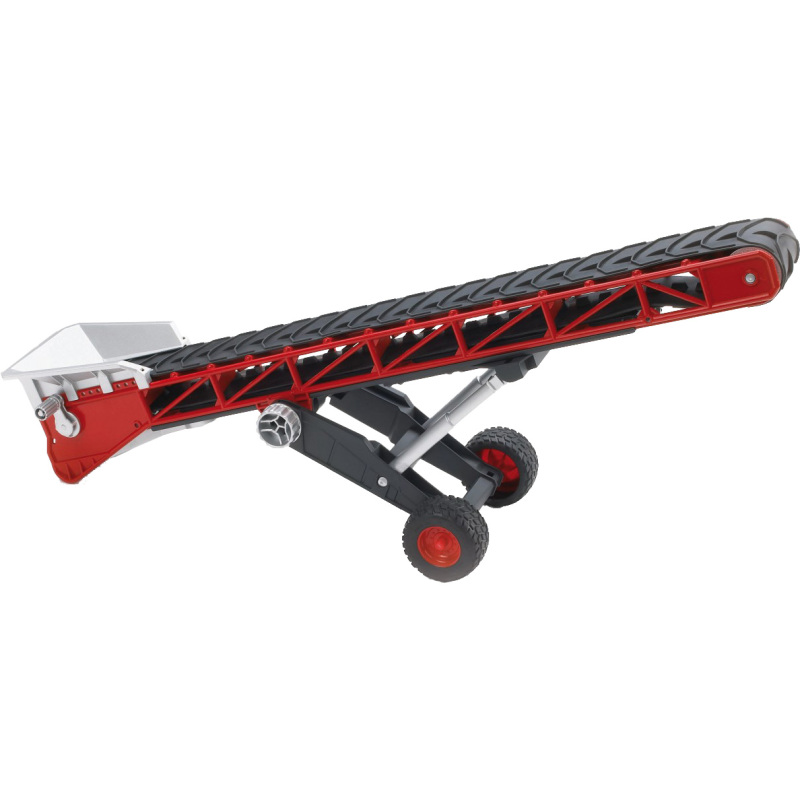 Deze transportband werkt echt, help de boer zijn hooibalen snel op de trailer te plaatsen en te transporteren naar de stal of verplaats zand of steen op / van vrachtwagens. De transportband kan uiteraard ook worden gekoppeld aan alle BRUDER trekkende voertuigen zoals tractoren, Unimog, vrachtauto’s met inbegrip van de Sprinter en bouwvoertuigen.