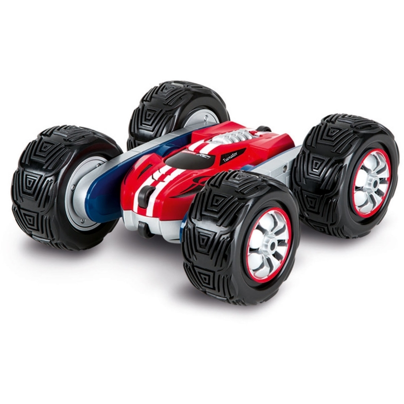 Niet van deze wereld – zo verschijnt de Carrera RC Turnator met zijn buitengewone constructie, die spectaculaire stunts en absoluut onvergelijkbaar rijplezier mogelijk maakt! Deze op afstand bediende auto zal je vanaf het begin in beweging brengen! Zijn enorme wielen die in tegengestelde richting kunnen worden aangedreven en een volle snelheid tot 20 km/u maken spectaculaire manoeuvres mogelijk. Met de 360° flip-action-functie gaat hij met een halsbrekende snelheid naar de baan – en is tegelijkertijd klaar voor de volgende waanzin. Of je kunt de RC-wagen in rondjes laten draaien op halsbrekende snelheid tot iedereen duizelig wordt. Het differentieel en de krachtige regeling met 2,4 GHz-technologie voor het parallelle gebruik van maximaal 16 voertuigen zorgen voor rijplezier dat de conventionele afmetingen ver te boven gaat! De LiFePO4-batterij levert tot 20 minuten stroom met slechts ongeveer 80 minuten oplaadtijd. Klaar om te rennen, krijg je alles wat je nodig hebt voor het rijplezier van je leven.