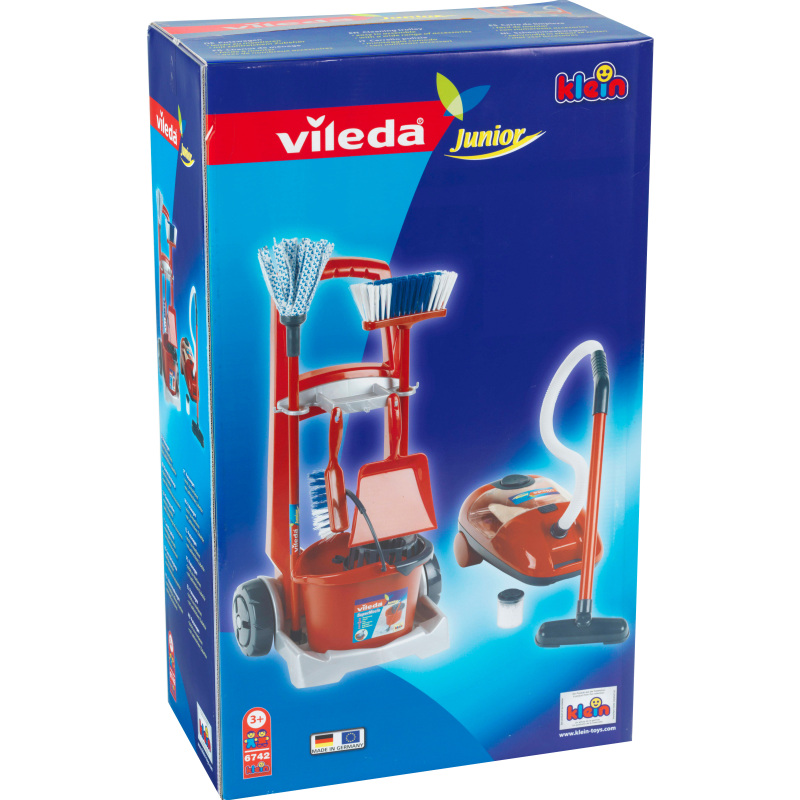 Met deze Vileda speelgoed schoonmaakkar en stofzuiger van Theo Klein ben je klaar voor de grote schoonmaak. De set bevat alles wat je nodig hebt om het huis brandschoon te maken, zoals een stofzuiger, bezem, steelmop, emmer en stoffer en blik. De schoonmaakkar is eenvoudig te monteren.