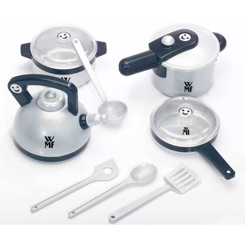 Wordt een echte chef-kok met deze leuke WMF speelgoed pannenset van Theo Klein. De set bestaat uit een snelkookpan, fluitketel, pannen en keukengerei wat je zeker nodig zult hebben bij het koken.